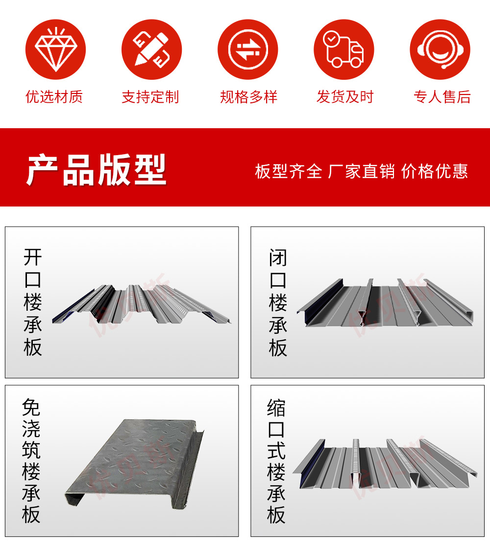 | 組合樓板厚度(mm) | 壓型板厚度(mm) | 組合板自重(kg/m2) | 最大無支撐時的跨度間距(m) | ||